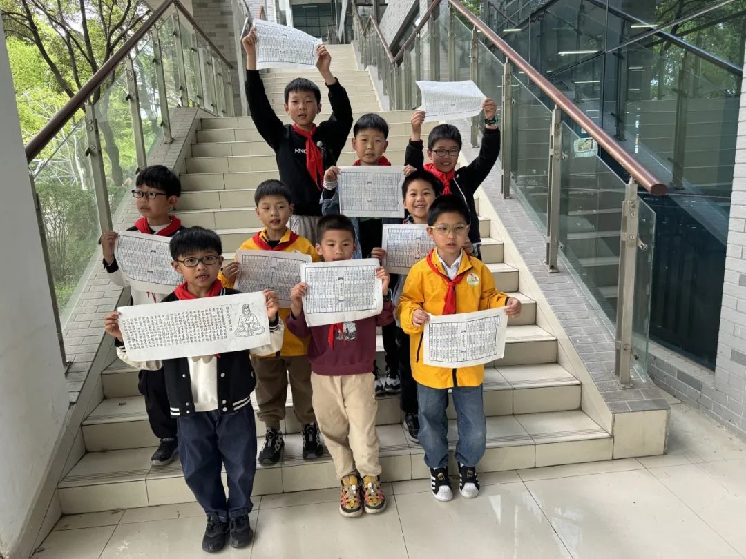 在印刷实践中心,队员们在观摩活字印刷的工艺流程外,还亲自动手拓印文字和图片,举着自己的作品,人人乐开花。