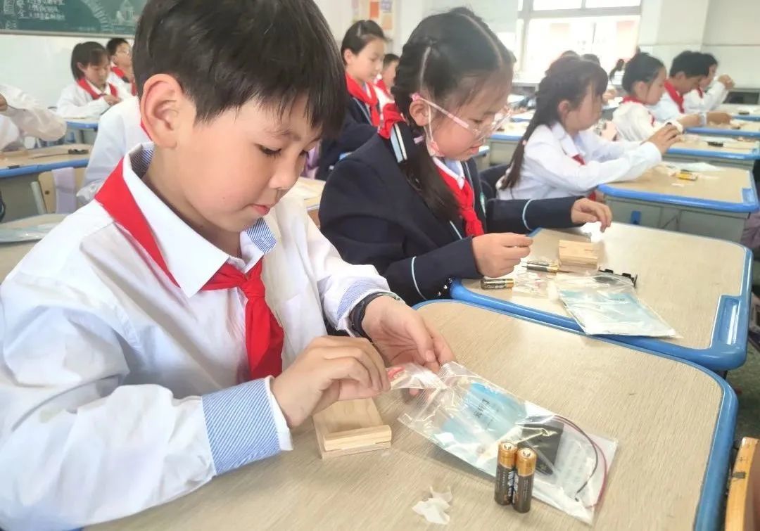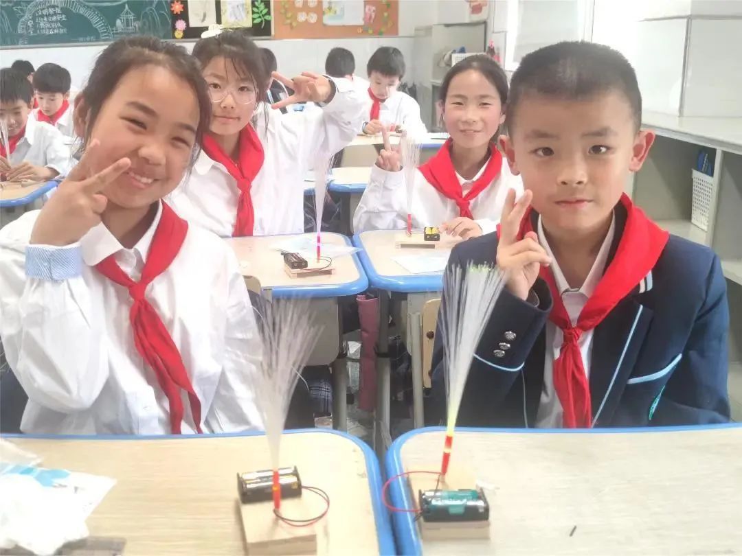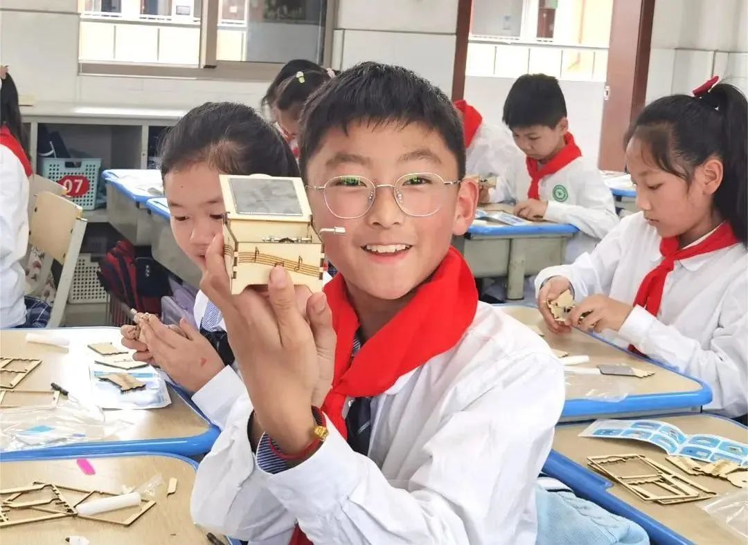 精彩的展示活动结束后,老师们将各种集科技、娱乐、文体等内容为一体的体验项目带到了各个班级,进一步拓宽了孩子们的视野 !孩子们大展风采,小台灯、光纤灯、八音盒……灵巧的双手做出大大的惊喜。