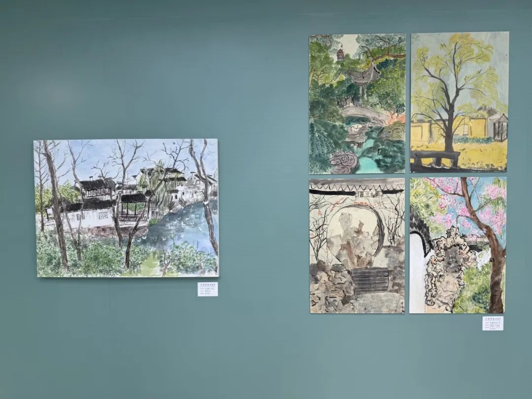 此次展览汇聚了中国画名师工作室的教学成果以及社团师生的精心之作。漫步于展厅之中,我们能感受到画面中所蕴含的深邃意境与无限韵味。山水园林之间,仿佛能听到流水的潺潺与鸟鸣的啾啾;花鸟鱼虫,栩栩如生,跃然纸上,让人沉醉于这水墨世界的生动与鲜活。师生们以笔墨为媒,将家乡的美景与风情融入画中,展现了无锡这座城市的独特魅力与人文底蕴。