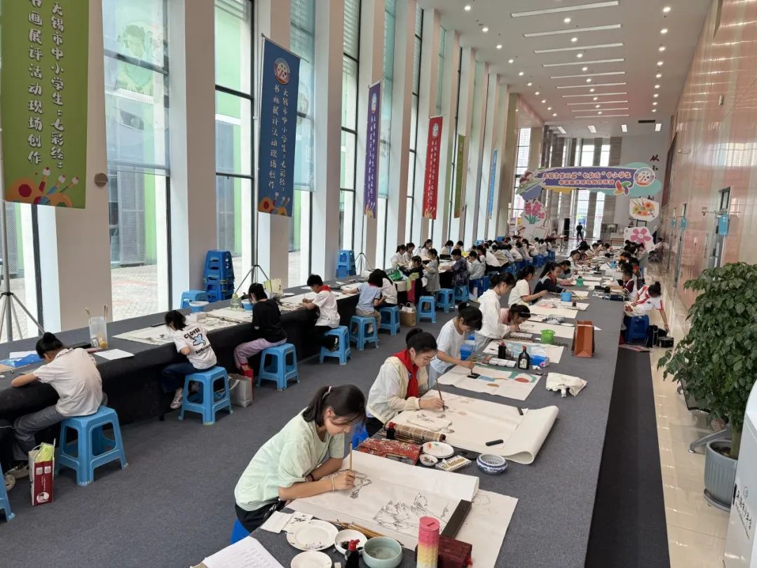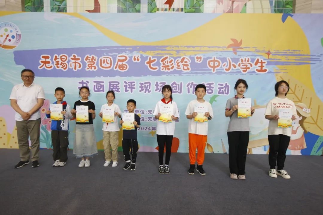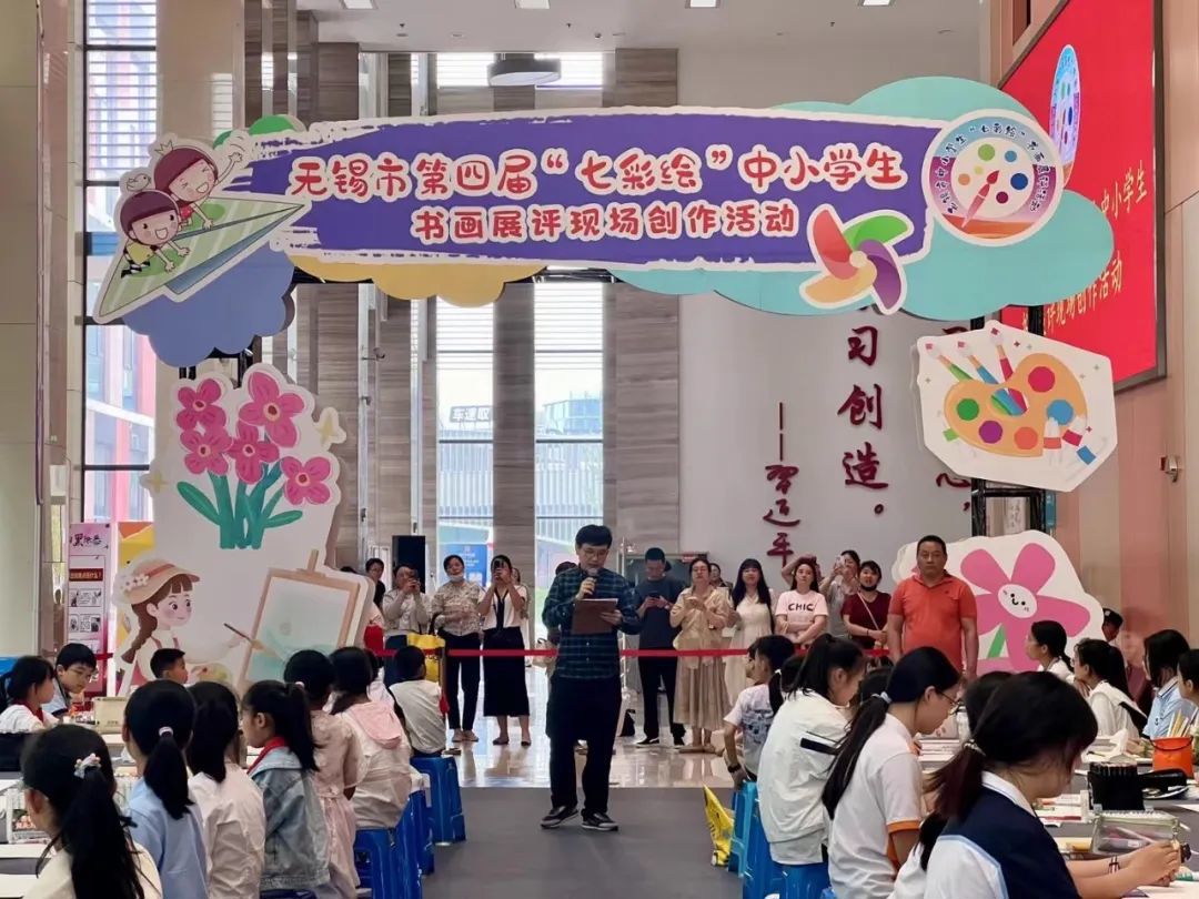 第四届中小学生“七彩绘”书画展评活动由无锡市教育局主办、无锡市少年宫承办,由各校推荐2000多件作品参与市级展评,近百人入围现场创作活动。在活动现场上,入围小选手们以“逐梦少年”为主题,举笔落纸,用水粉、国画、版画、剪贴画、书法等艺术形式,创作出了一幅幅别开生面、富有童趣的作品,展现了新时代无锡逐梦好少年们在阳光下健康成长的风貌。