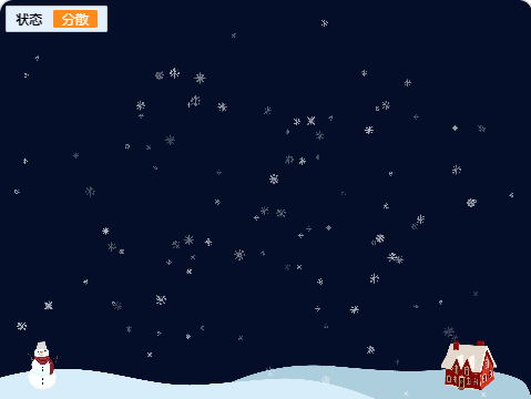 本节课通过学习随机数、角色特效、响度等知识,完成雪花分散、聚合的动画。在程序中还可以通过声音响度控制雪花效果