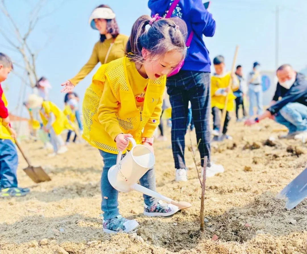 与孩子在满怀希望的季节在少年宫共同种植一棵树,人便与自然有了羁绊,并为小树装饰心愿牌。
