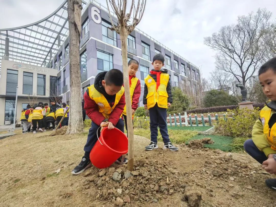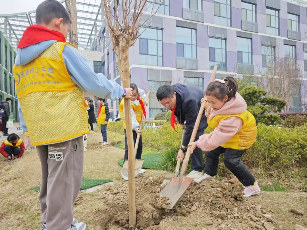 为进一步深化社会主义核心价值观教育,在第47个植树节来临之际,无锡市少年宫少工委与工会分别组织少先队员与全体教职工,围绕“植此青绿 向春而行”开展了植树节活动。通过科学实践与劳动教育,少先队员与全体教职工共同践行生态文明理念,为绿色低碳发展注入新活力。