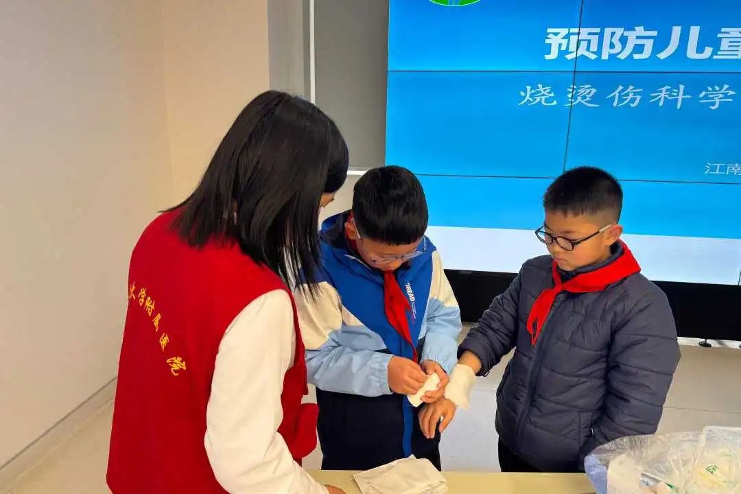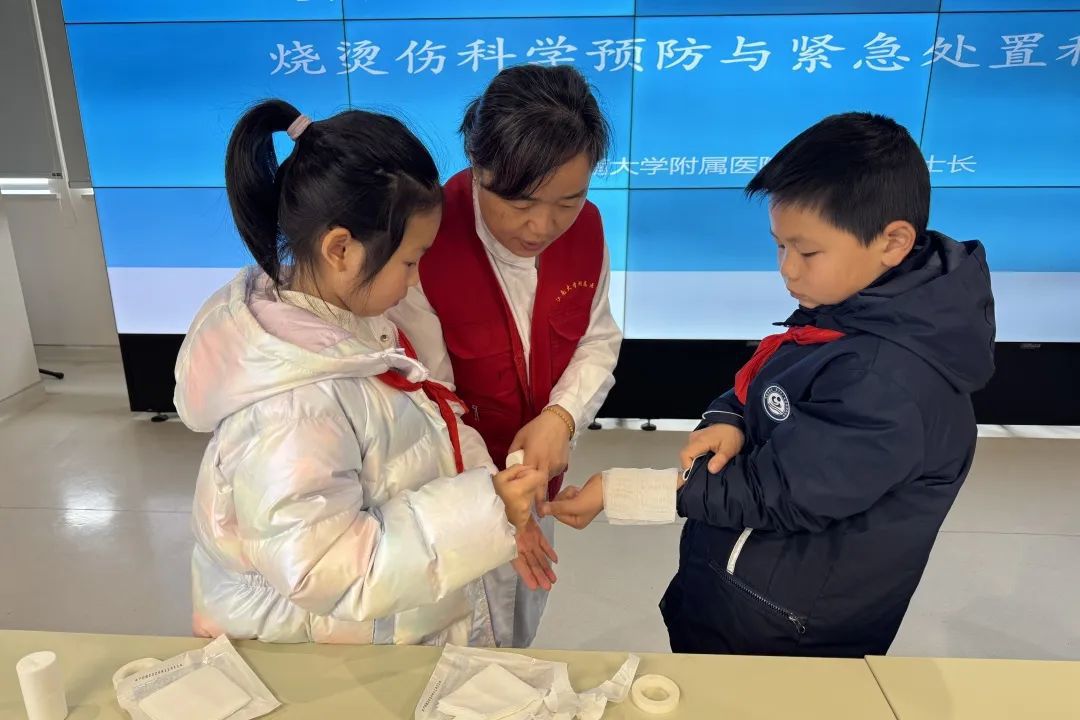 3月9日,无锡市红领巾队长集训营的少先队员来到了江南大学附属医院。在烧创伤诊疗中心省级青年文明号医护团队的叔叔阿姨带领下,"烧烫伤防护小课堂"通过沉浸式体验,将安全知识播撒进童心。