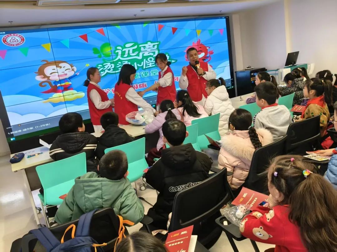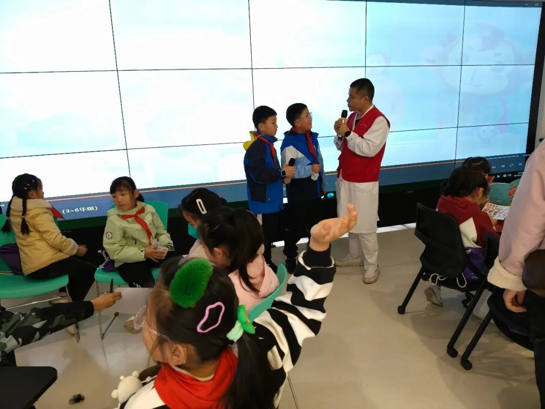 为了让队员们更好地吸收知识,医护人员精心准备了多种趣味环节。在游戏互动区,“逃离烫怪大冒险”游戏惊险刺激,孩子们模拟在生活场景中躲避“烫怪”的袭击,在玩乐中牢记远离烫源的重要性。问答竞赛环节更是将活动推向高潮,面对一道道烧烫伤相关问题,小队员们积极抢答,小手举得高高的,稚嫩的声音中满是自信,“冲脱泡盖送”五字口诀脱口而出,看来都把知识记牢啦!