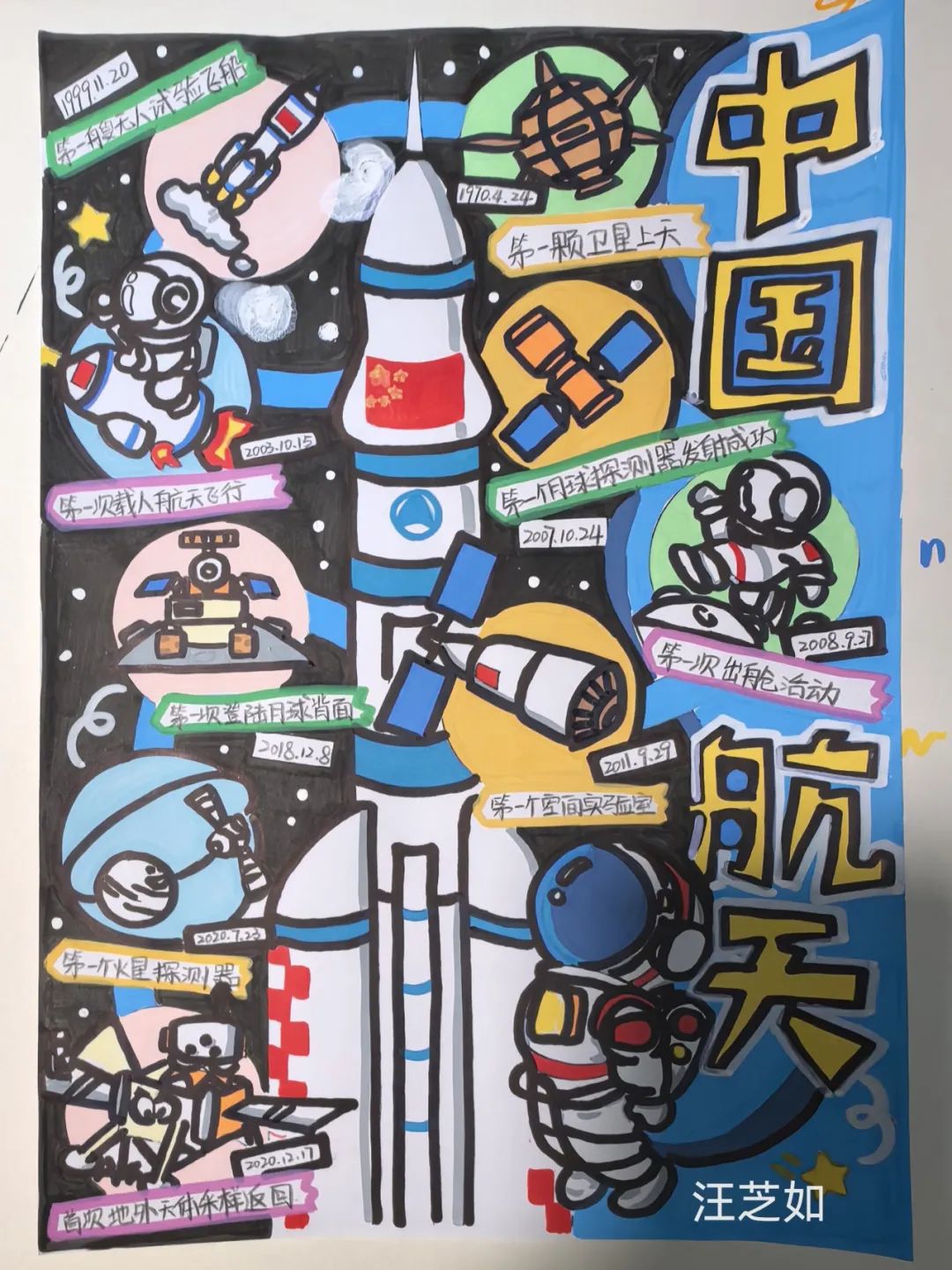 这场研学活动不仅让航天知识从课本跃入现实,更让家国情怀与科学梦想在孩子们心中扎根。探索未止步,活动结束,孩子们还将所学所想所悟,用自己的方式描绘了出来,中国航天的未来,正因这些仰望星空的童心而更加璀璨!
