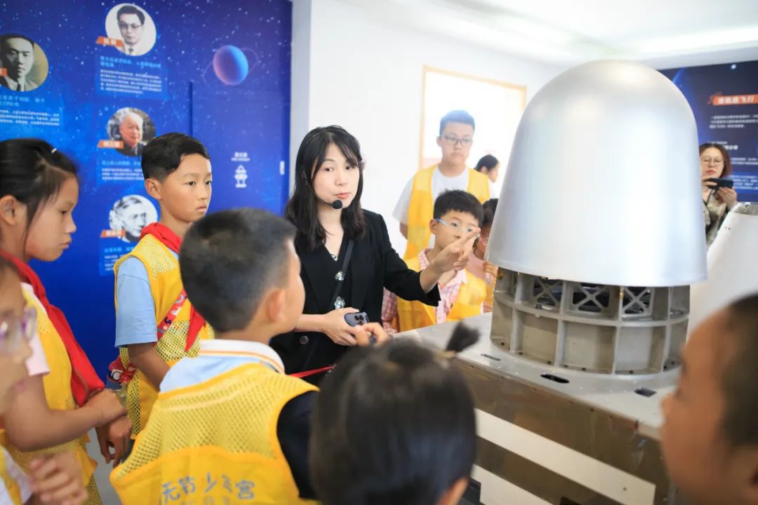 “看!这是我们无锡的卫星!”当银色的“梁溪号”备用卫星出现在眼前,唐老师揭秘:迪迩一号•梁溪号卫星在轨主要开展小型无人太空飞船平台技术验证,并搭载光学观测载荷和生命科学载荷等。一颗卫星如何改变生活?答案藏在孩子们亮晶晶的眼睛里。