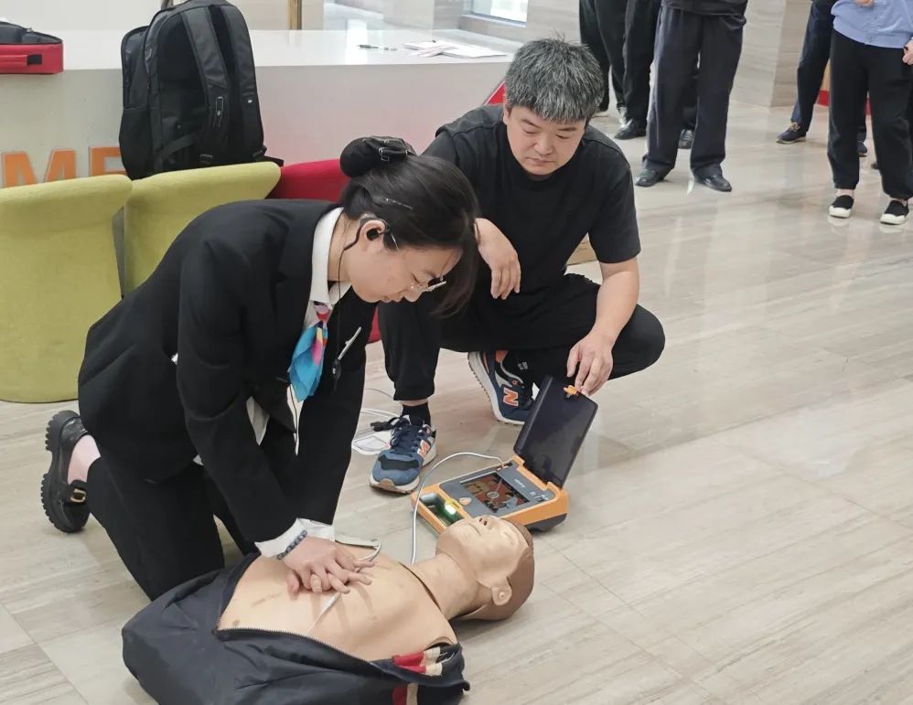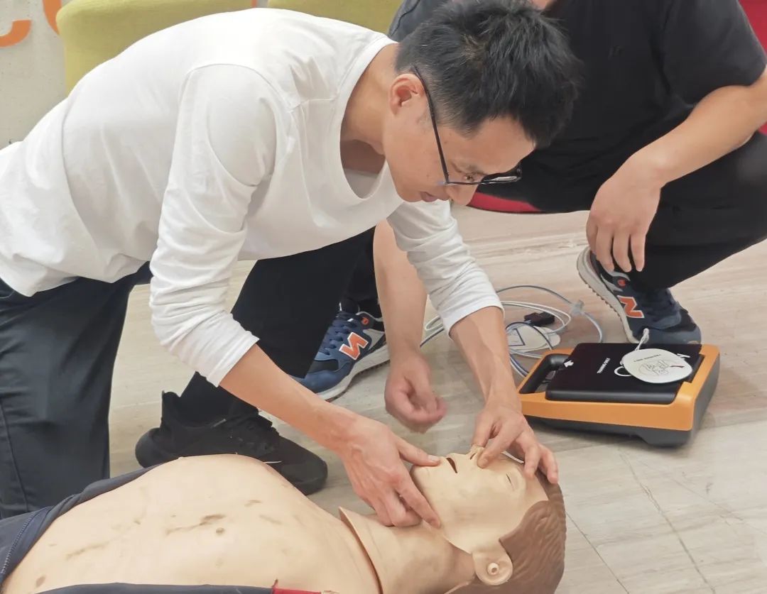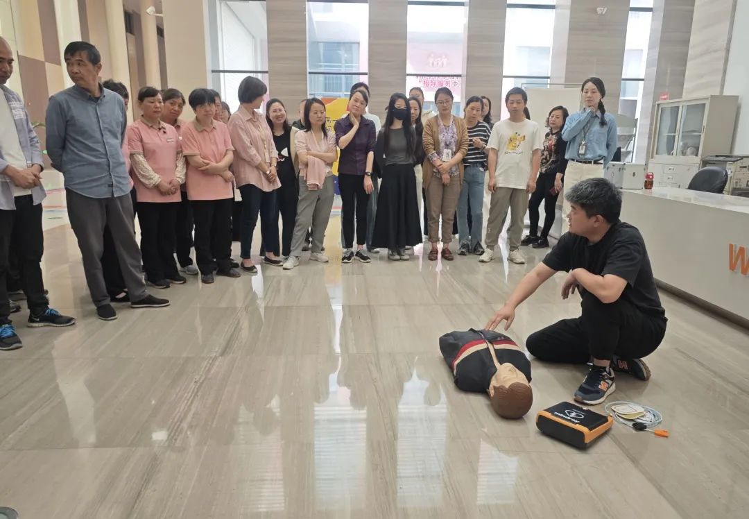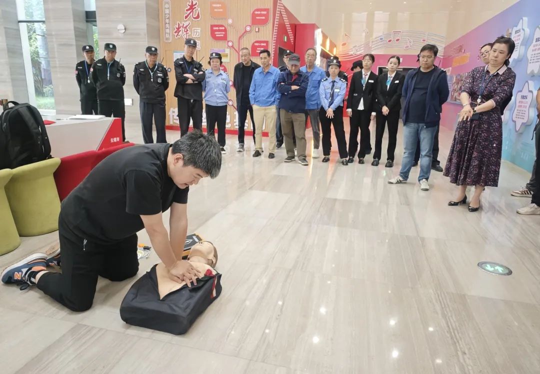 随后,少年宫邀请专业人员现场演示并培训了AED设备操作及心肺复苏流程,教职工与物业人员分组演练,确保急救技能“人人过关”。