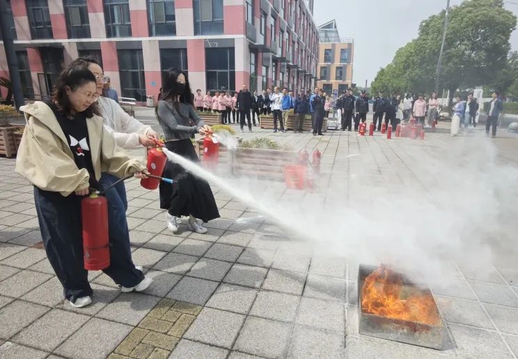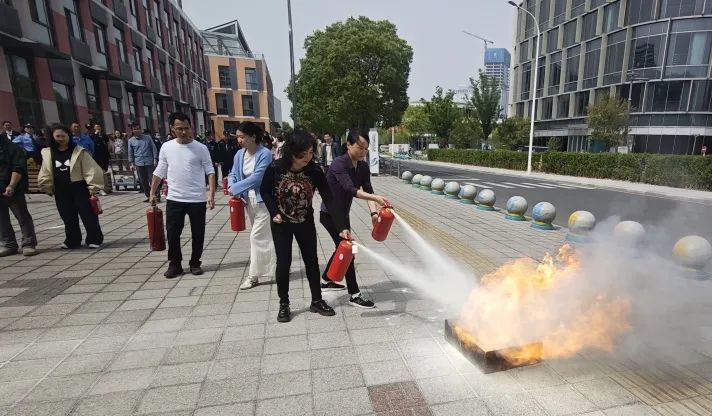 应急演练完毕后,参训人员在宫北广场开展消防器材实操演练,通过“一提二拔三握四压”的灭火器使用口诀,切实掌握初期火灾扑救技能。
