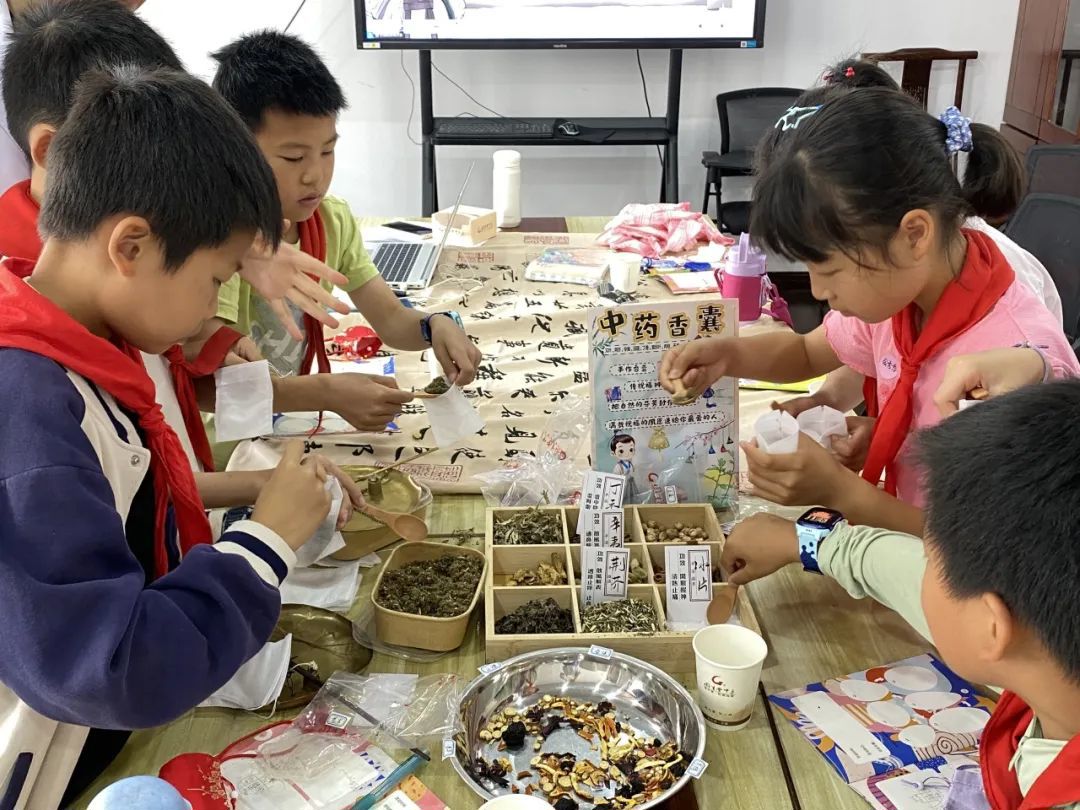 第四关神农药谷是活动的压轴环节:香囊制作。孩子们认真观察驱蚊所需的中草药,将研磨混合后的粉末装入绣有端午纹样的香囊中。当孩子们带着亲手制作的香囊和满满的收获离开时,这场穿越古今的文化对话也画上了圆满的句号。