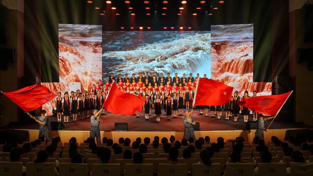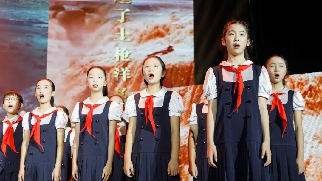 舞台上,孩子们神情庄重,目光坚定,以饱满的热情和精湛的合唱技巧,完美诠释了《保卫黄河》中磅礴的气势和深厚的民族情感。"风在吼,马在叫,黄河在咆哮..."熟悉的旋律在孩子们真挚的演绎下焕发出新的蓬勃的生命力,令人心潮澎湃。
