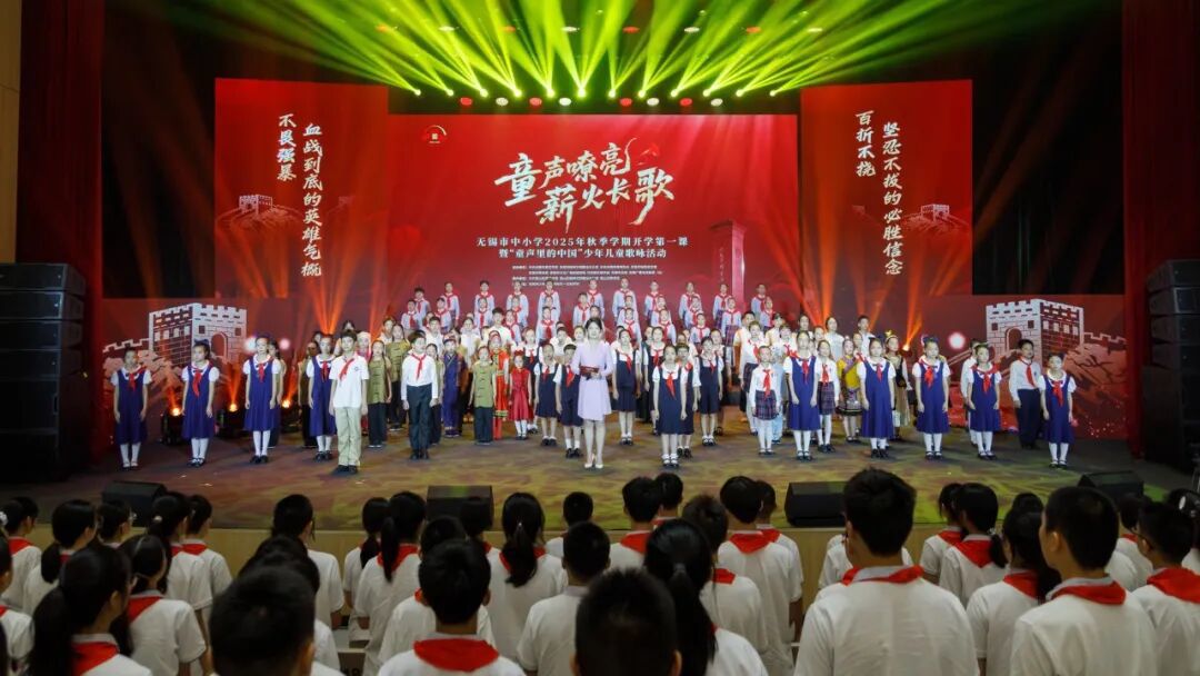 2025年8月31日新学期启幕之际,“童声嘹亮 薪火长歌”无锡市中小学2025年秋季学期开学第一课暨“童声里的中国”少年儿童歌咏活动在锡山区天一实验学校举行。无锡市少年宫合唱团、无锡市教育局“师悦”女教师合唱团携经典作品《黄河大合唱》第七乐章《保卫黄河》登上舞台,以澎湃的歌声唱响爱国主旋律,为全市青少年带来一场震撼心灵的视听盛宴。