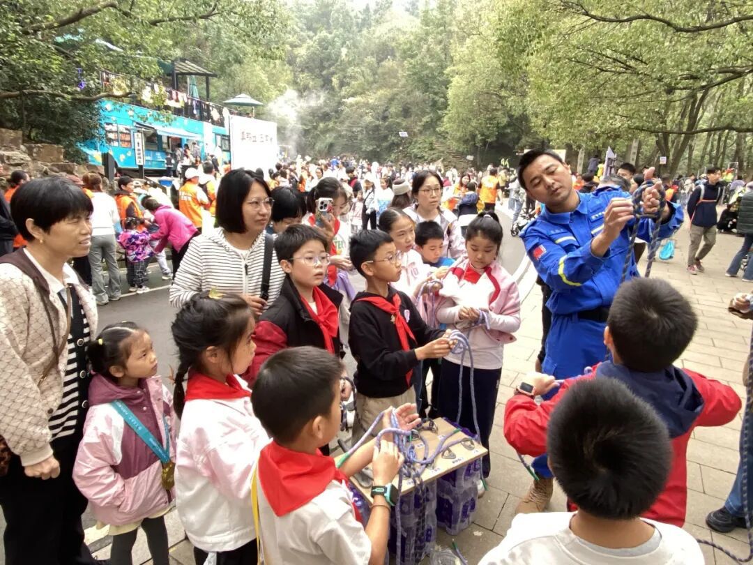 最终的挑战设在二茅坪——第三打卡点。在这里,救援队队员演示了多种实用的野外绳结打法。一根简单的绳索,在救援队员手中仿佛被赋予了生命,变化出各种牢固的结扣。孩子们看得目不转睛,并在家长的协助下积极动手尝试,感受着户外生存的智慧与力量。