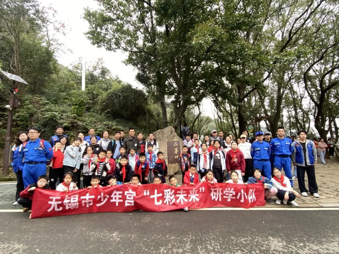 当红、黄、蓝三支队伍全部成功抵达二茅坪时,孩子们的脸上洋溢着自豪和兴奋的笑容。全体活动成员与无锡蓝天救援队的队员们一起,在这里留下了具有纪念意义的大合影。这张照片,不仅记录了一次愉快的周末出行,更定格了孩子们成长路上关于勇气、知识与责任的重要一课。