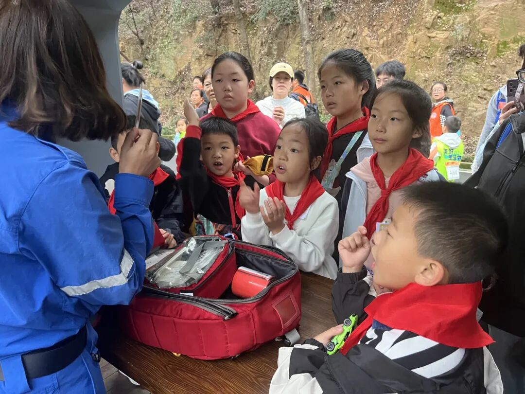 在第一打卡点,救援队队员打开随身急救包,向孩子们展示了碘伏棉签、创可贴、急救毯等常见急救物品。“原来这个亮闪闪的毯子关键时刻能保暖救命!”一位小朋友惊奇地说。通过生动讲解,孩子们和家长不仅认识了这些物品,更深刻理解了它们的用途和重要性。