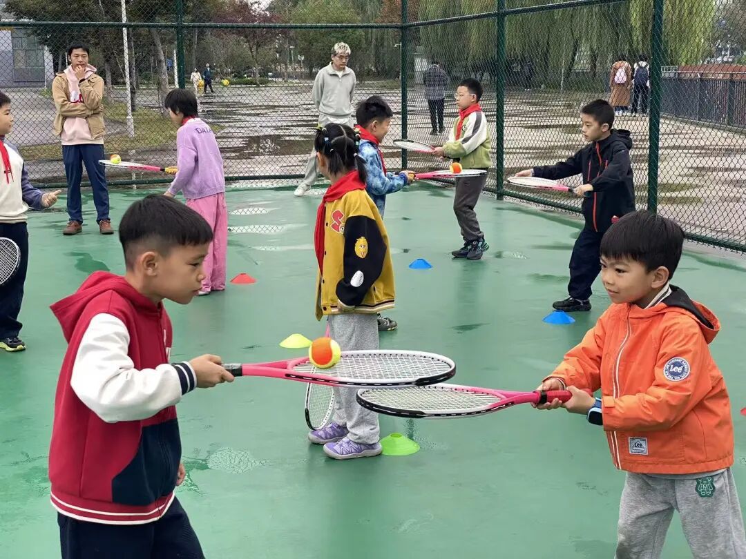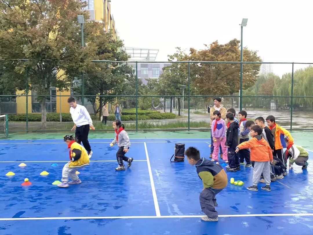 11月9日,尽管天空阴云密布,飘洒着毛毛细雨,但这份寒意却丝毫未能减弱无锡市少年宫内涌动着的热情与活力。上午十点,以“一拍在手,‘网’罗精彩”为主题的“七彩未来”研学小队网球研学活动,在室外网球场准时拉开帷幕。二十名满怀期待的少先队员,用他们的坚持和欢笑,开启了一段难忘的网球探索之旅。