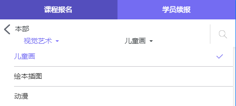 新学员或老学员新项目报名:在【课程报名】下面从左往右分别选择三个选项,即可看到对应课程的项目列表。老学员老项目续费:在“学员续报”内查看课程。