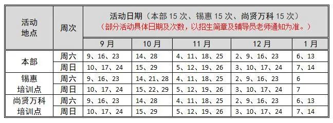 四、活动日期参考(如有临时调整,将通过微信公众号另行通知):