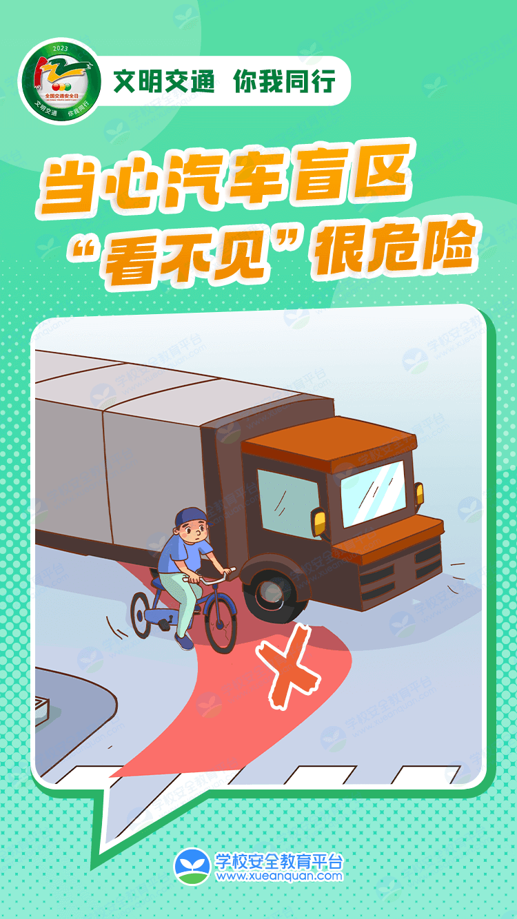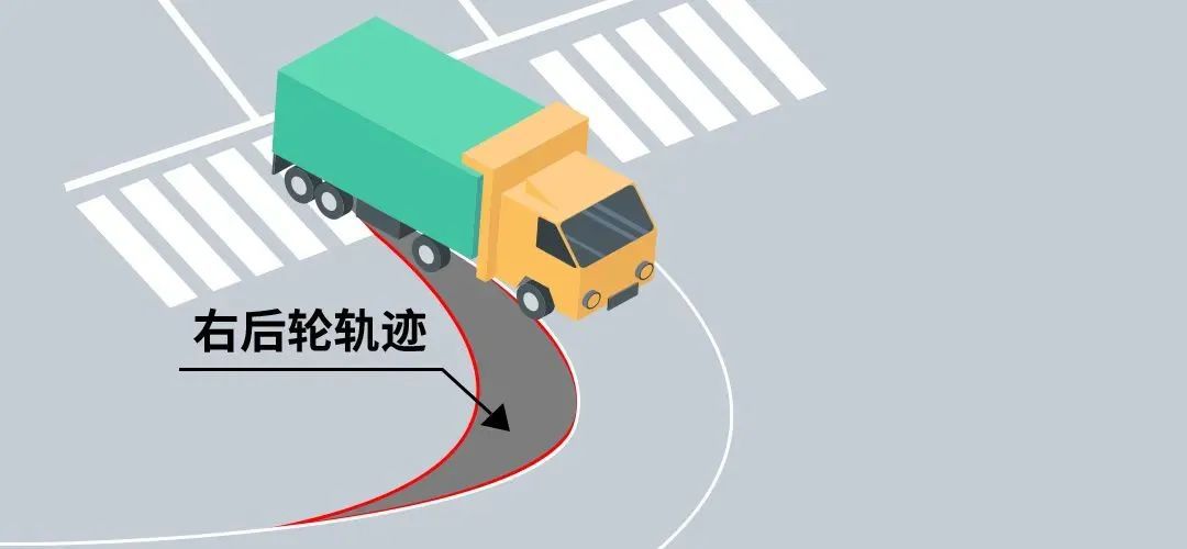 大型车辆,如大货车、挂车、大客车等,在转弯时由于“内轮差”的存在,会形成一个致命的“转弯盲区”。因此,路上遇到大型车辆,一定要保持足够的横向距离,以防其突然转弯将自己卷入车底。