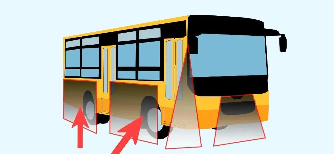 D盲区处于司机直接的视线范围以及三块后视镜的视线范围外,所以客车及货车的D盲区会大一些。