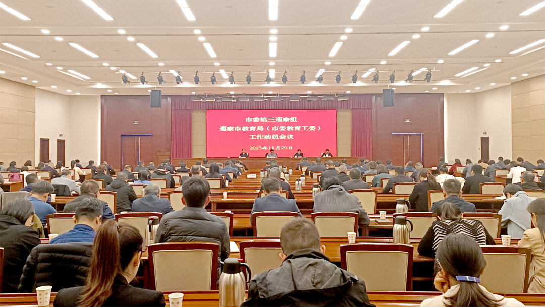 根据无锡市委关于巡察工作的统一部署,2023年11月29日,无锡市委第三巡察组巡察市教育局(市委教育工委)工作动员会议召开。无锡市委第三巡察组组长江杰作动员讲话,对深入学习贯彻习近平总书记关于巡视工作重要论述,扎实开展巡察工作提出要求。市委教育工委书记范良就市教育局(市委教育工委)支持配合巡察工作作表态发言,市委教育工委副书记、市教育局局长宋新春主持会议。 市委第三巡察组副组长杨大雄、郭纪良及有关同志,市纪委监委派驻第九纪检监察组组长汪辉雷,市教育局(市委教育工委)领导班子全体成员出席会议;近三年退休的领导班子成员、局机关全体工作人员,各市(县)区委教育工委、教育局主要负责人,各直属院校、事业单位、市属民办院校党政主要负责人等列席会议。