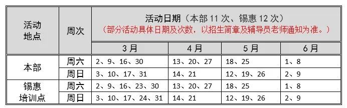 四、活动日期参考(如有临时调整,将通过微信公众号另行通知):