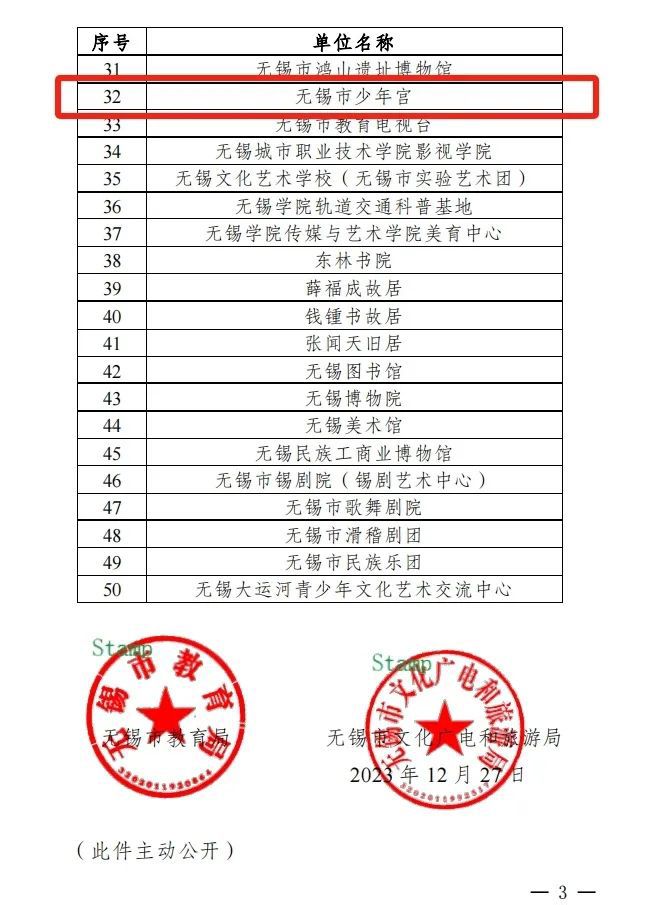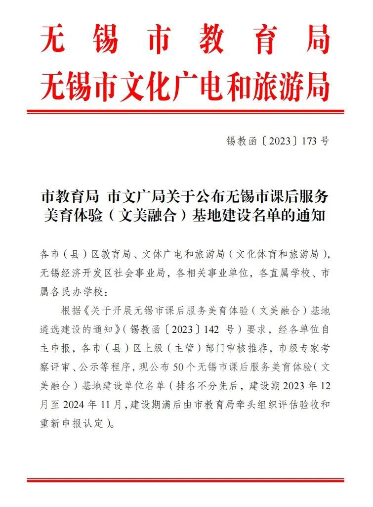 无锡市课后服务美育体验(文美融合)基地建设名单