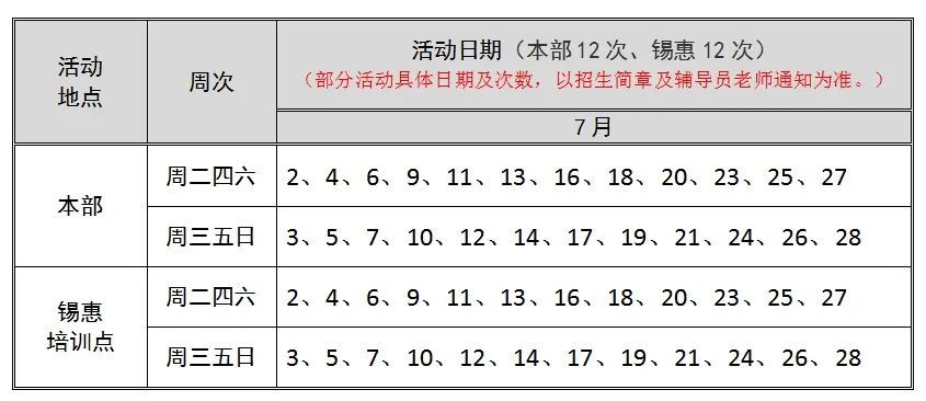 四、活动日期参考(如有临时调整,将通过微信公众号另行通知):