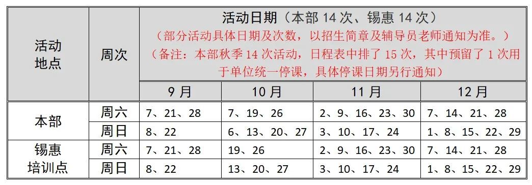 四、活动日期参考(如有临时调整,将通过微信公众号另行通知):
