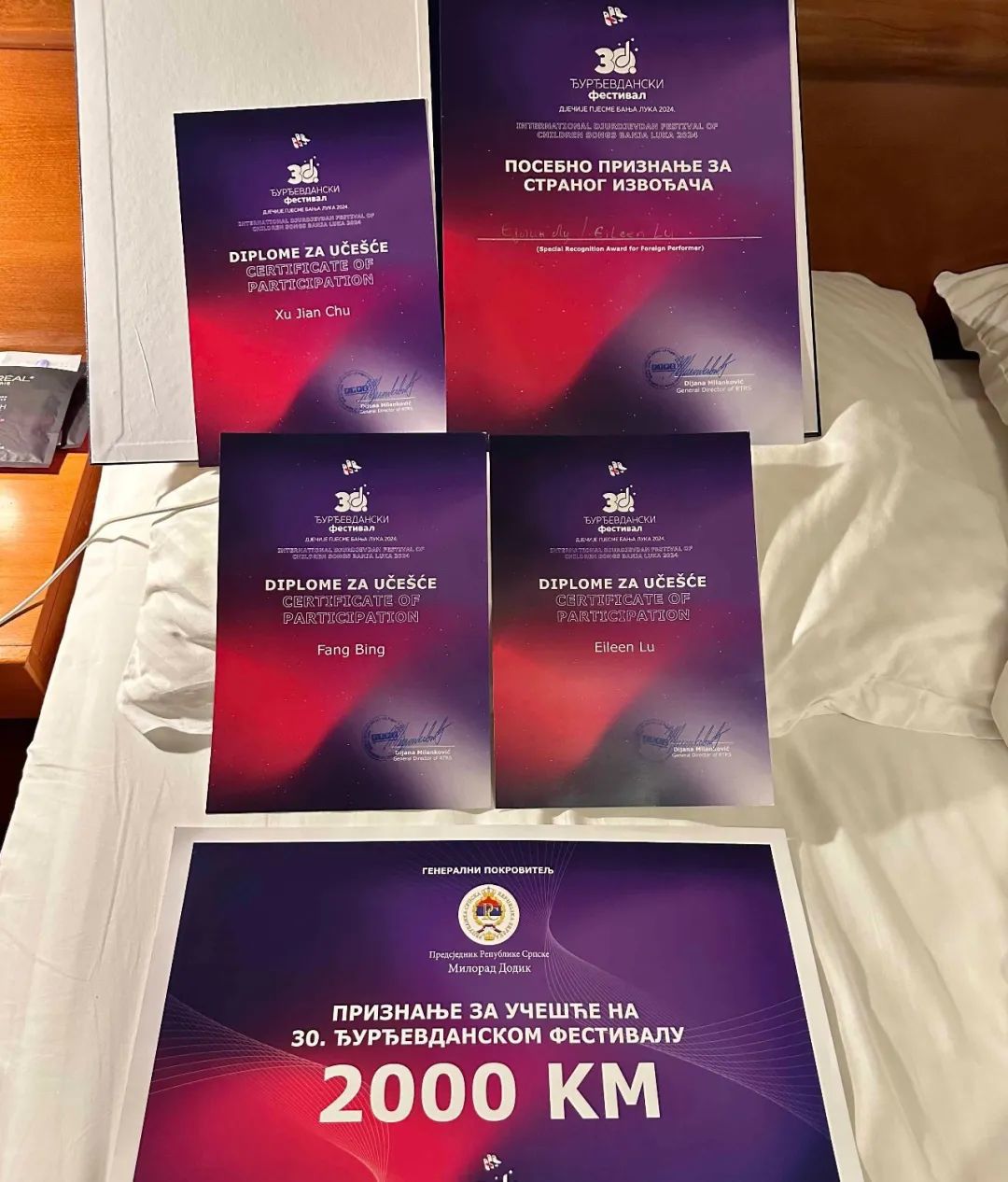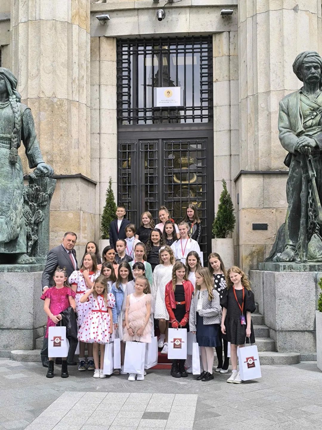 在音乐节期间,波黑塞族共和国总统米洛拉德·多迪克特别接见了参赛的小选手们,并与来自中国的陆亦单独合影。总统称赞陆亦非常可爱,展现了对中国小选手的高度赞赏和友好之情。波黑国家电视台台长、大赛组委会负责人分别与来自中国的小选手陆亦合影。