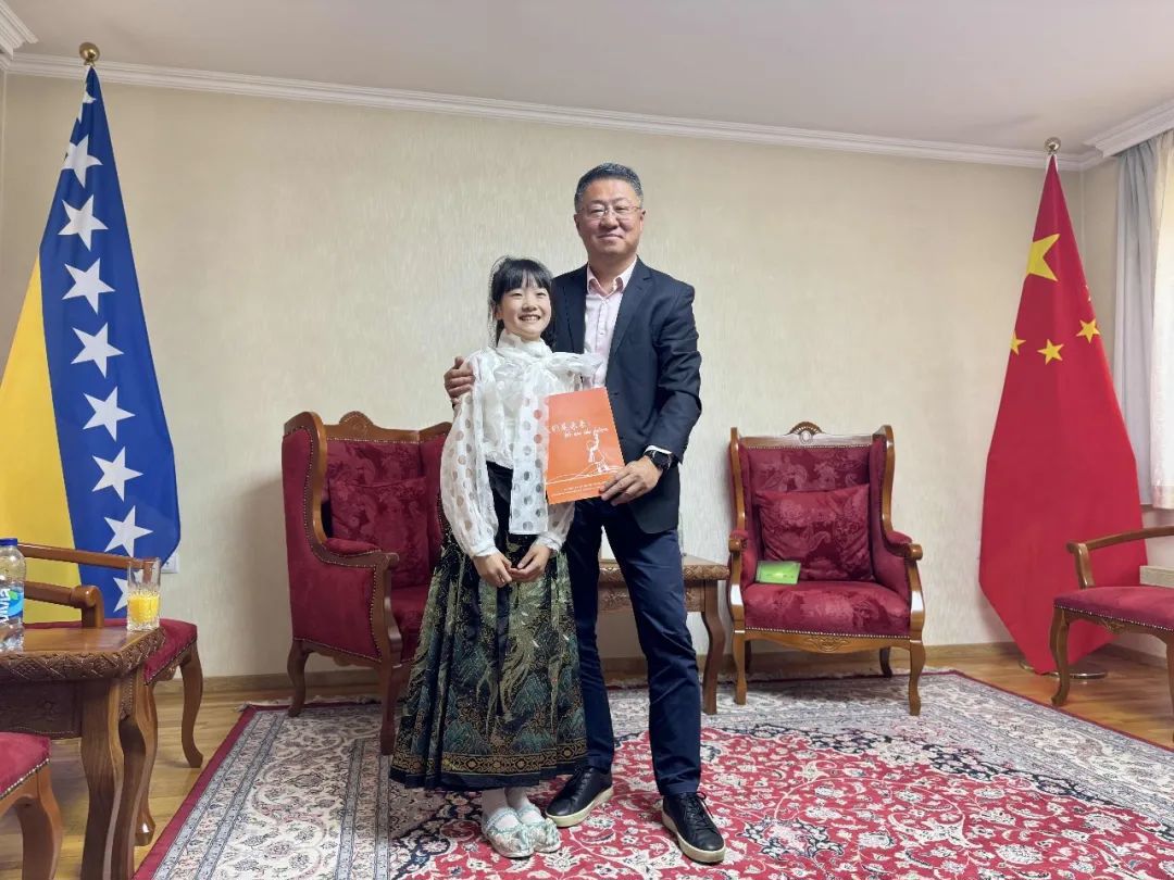 2024年5月19日,陆亦一行前往中国驻波黑大使馆,受到了缪大可代办和大使馆工作人员的热情接待。缪代办详细了解了比赛情况,向陆亦小朋友表示祝贺,赠送了波黑首日封礼物给陆亦,并寄语陆亦要同时学好艺术与文化,无论将来从事什么,都要做最好的自己。