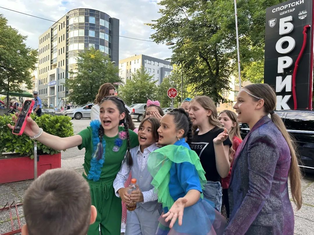 2024年5月15日在波黑国家电视台举办了日尔杰夫丹国际少儿艺术节30周年启动仪式暨新闻发布会,来自中国、俄罗斯、保加利亚、克罗地亚、塞尔维亚等国家的24个孩子逐一自我介绍。国家电视台负责人采访中国小选手陆亦并合影。随后,参赛选手在巴尼亚卢卡乡村尽情地玩耍交流,一下子就变成好朋友!16日,参赛选手在波黑国家电视台举行走红毯仪式,孩子们身穿盛装由专车送到电视台门口,在观众欢呼声中走上红毯接受采访并留影。陆亦同学表现得自然大方,亲切随和。