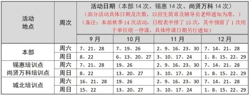 四、活动日期参考(如有临时调整,将通过微信公众号另行通知):