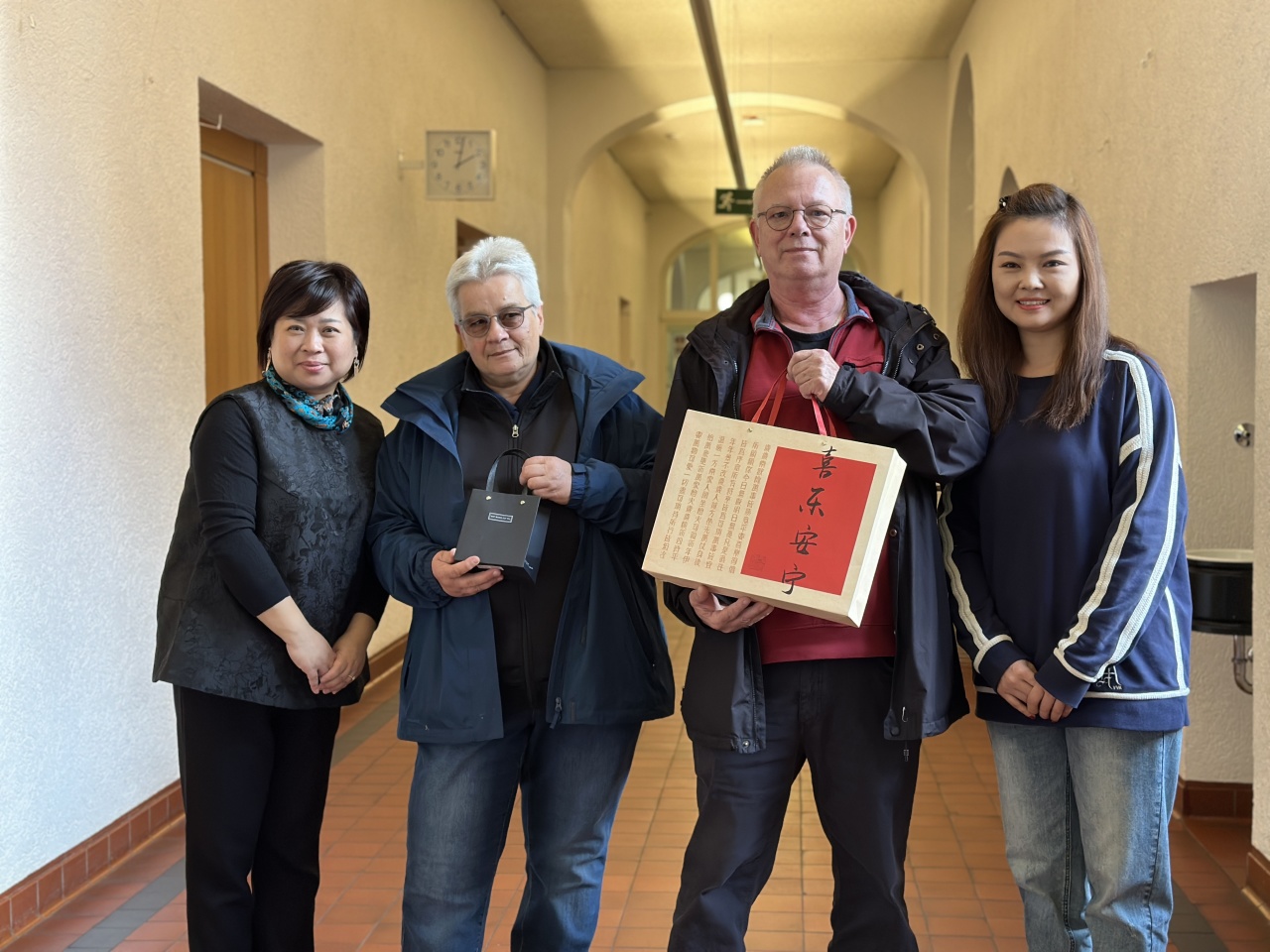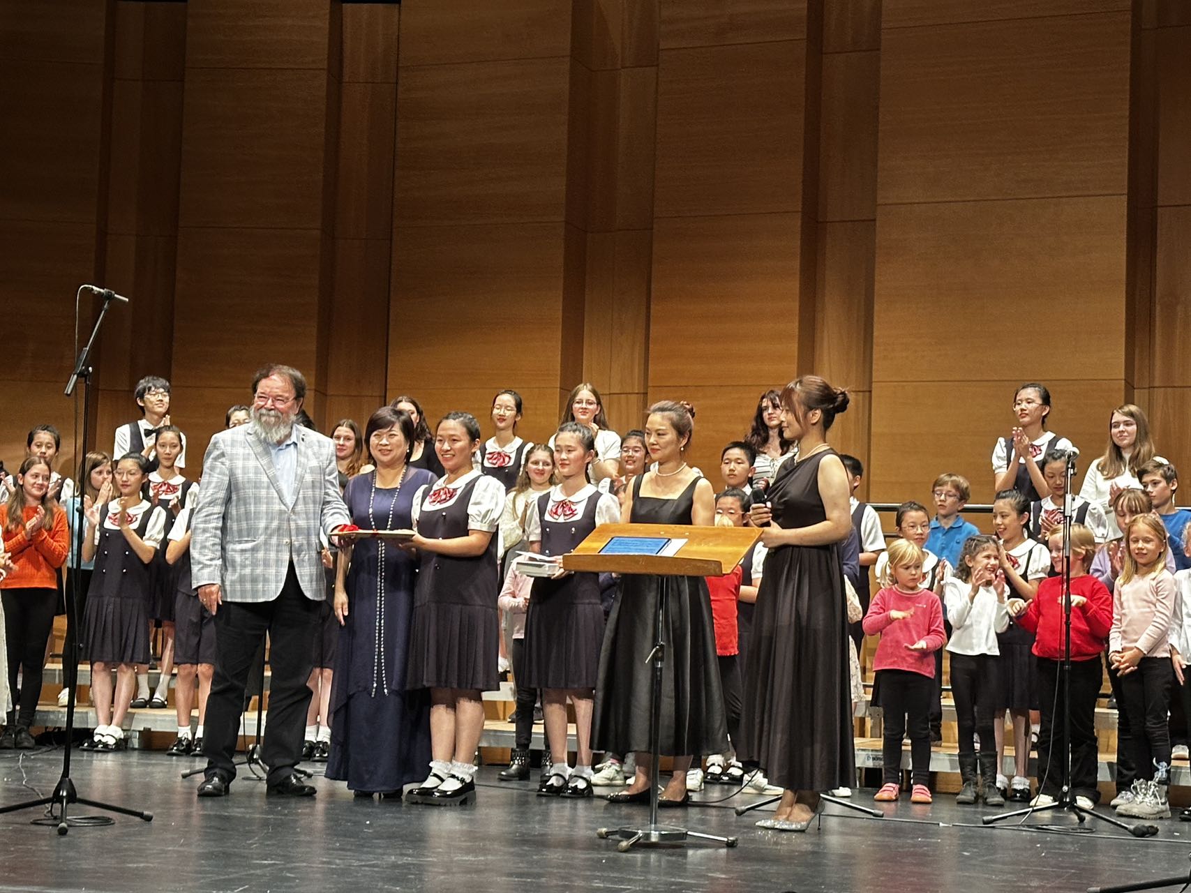 经市外办推荐,无锡在德国友好交流城市博霍尔特市副市长古德伦·科珀斯女士(Gudrun Koppers)、博霍尔特市国际事务专员佩特拉·陶巴赫女士(Petra Taubach)、博霍尔特市中德友好协会主席席乐(Stefan Schlier)先生及林华女士一行10人也专程赶来参加音乐会,音乐会结束后,他们与孩子和老师们见面并交换礼物。博霍尔特市副市长古德伦·科珀斯女士说,此次专场音乐会让中德青少年在艺术的氛围中结交新朋友,促进了共同成长和进步。明年是博霍尔特与无锡友好交流40周年,她计划明年访问无锡,希望能进行更深入的交流。无锡市少年宫合唱团团长王伟澍女士表示,老师和孩子们都非常欢迎他们访问中国,访问无锡,希望双方通过音乐提升跨文化交流能力和全球意识,也为推动中德两国文化繁荣与发展做出积极贡献。