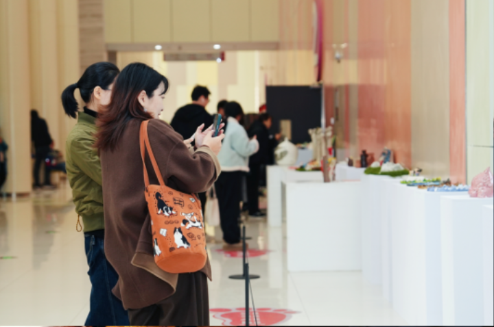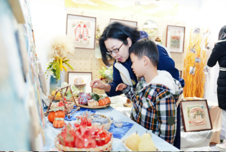 在师生陶艺优秀作品展区,一件件散发着孩子们纯真想象与创造力的作品,不仅展示了孩子们在陶艺方面的才华,更是陶艺教育在培养孩子审美能力、创新思维和动手能力方面的成果展现。在学生实践工作坊展区,人潮涌动,气氛热烈,工作坊的同学们,热情引导观众参与互动体验,自信介绍作品创意构思,引得观众阵阵赞叹。