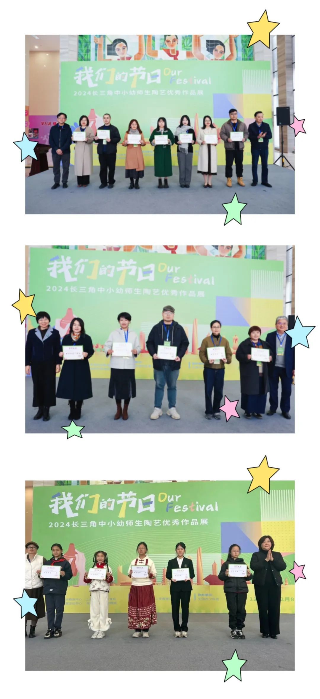 上海市校外教育协会会长卢晓明、上海市科技艺术教育中心副主任田磊、江苏省妇女儿童活动中心副主任宗云、浙江省美术教育研究会副会长李永正、浙江省陶艺教育联盟秘书长王春红等领导嘉宾分别为师生作品和工作坊获奖单位代表颁奖。