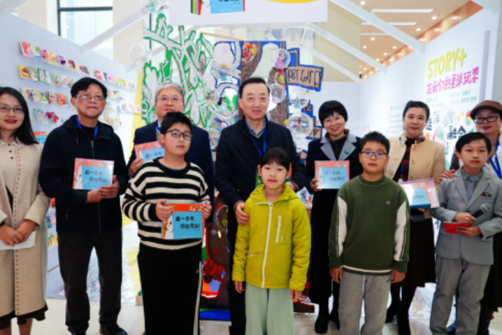 与会嘉宾与学生代表一同按下本次展览启动按钮。随后,大家一同观摩了少年宫美育绘本新书发布式,并参观了师生优秀作品展和学生陶艺实践工作坊。