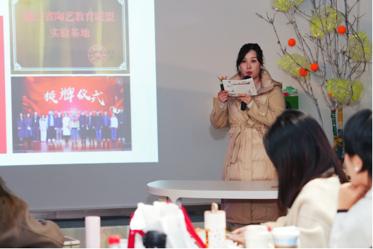 上海安生学校王露老师以《装饰的秩序之美-绞胎装饰纹样的创作》为题,分享了她在实施初中美术与陶艺项目教学探索中,融合创生教学资源的实践成果。