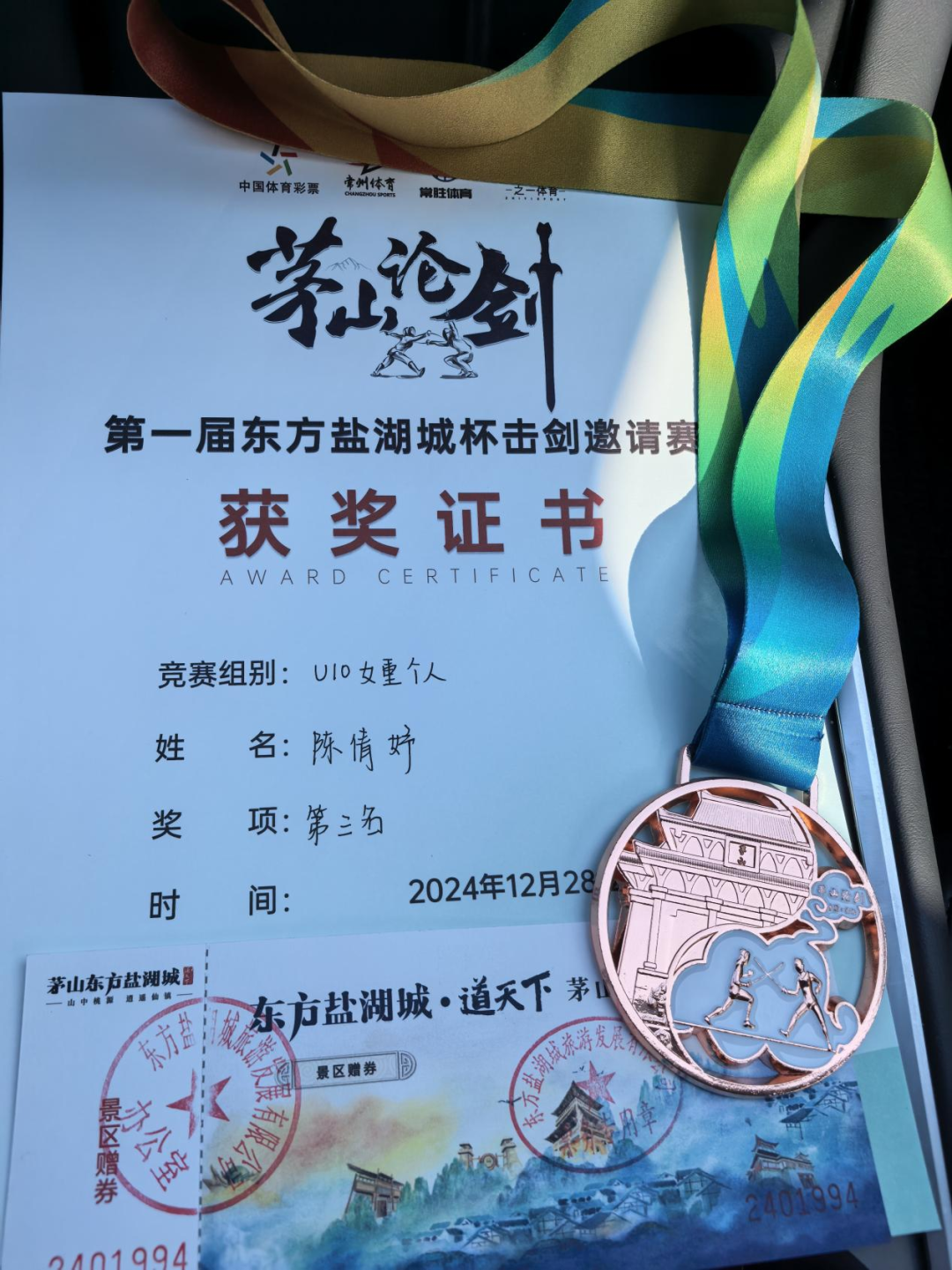 热烈祝贺无锡市少年宫击剑项目学员陈倩妤荣获“第一届东方盐湖城杯击剑邀请赛”个人季军的好成绩!