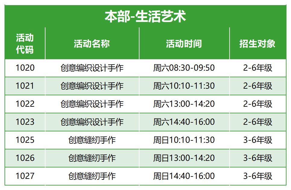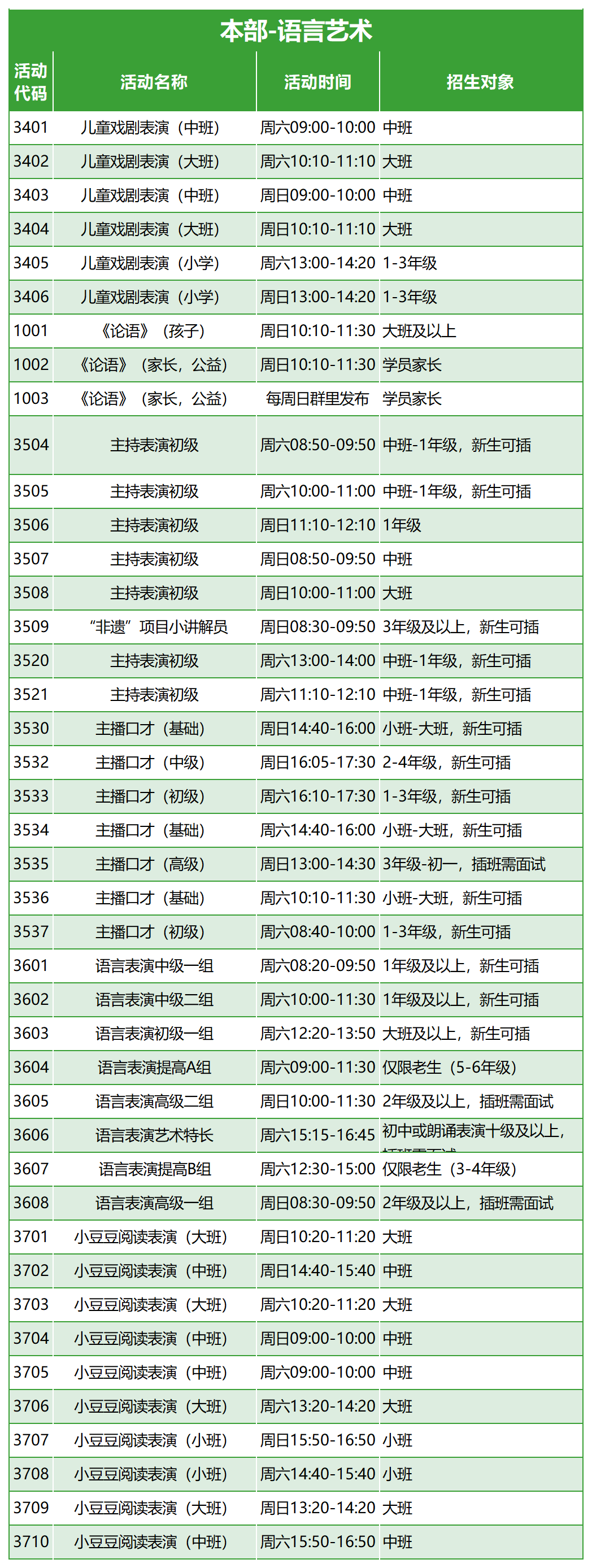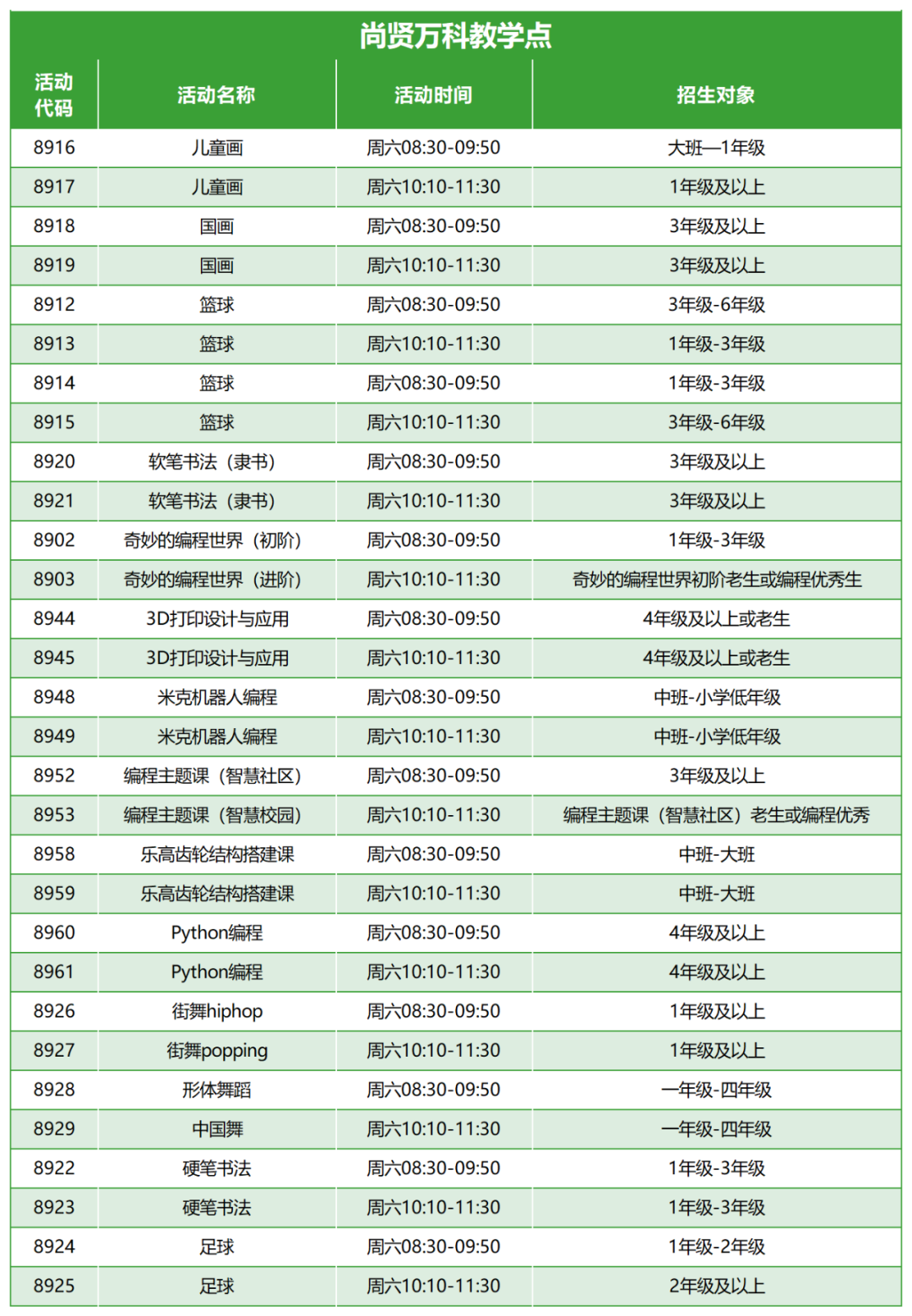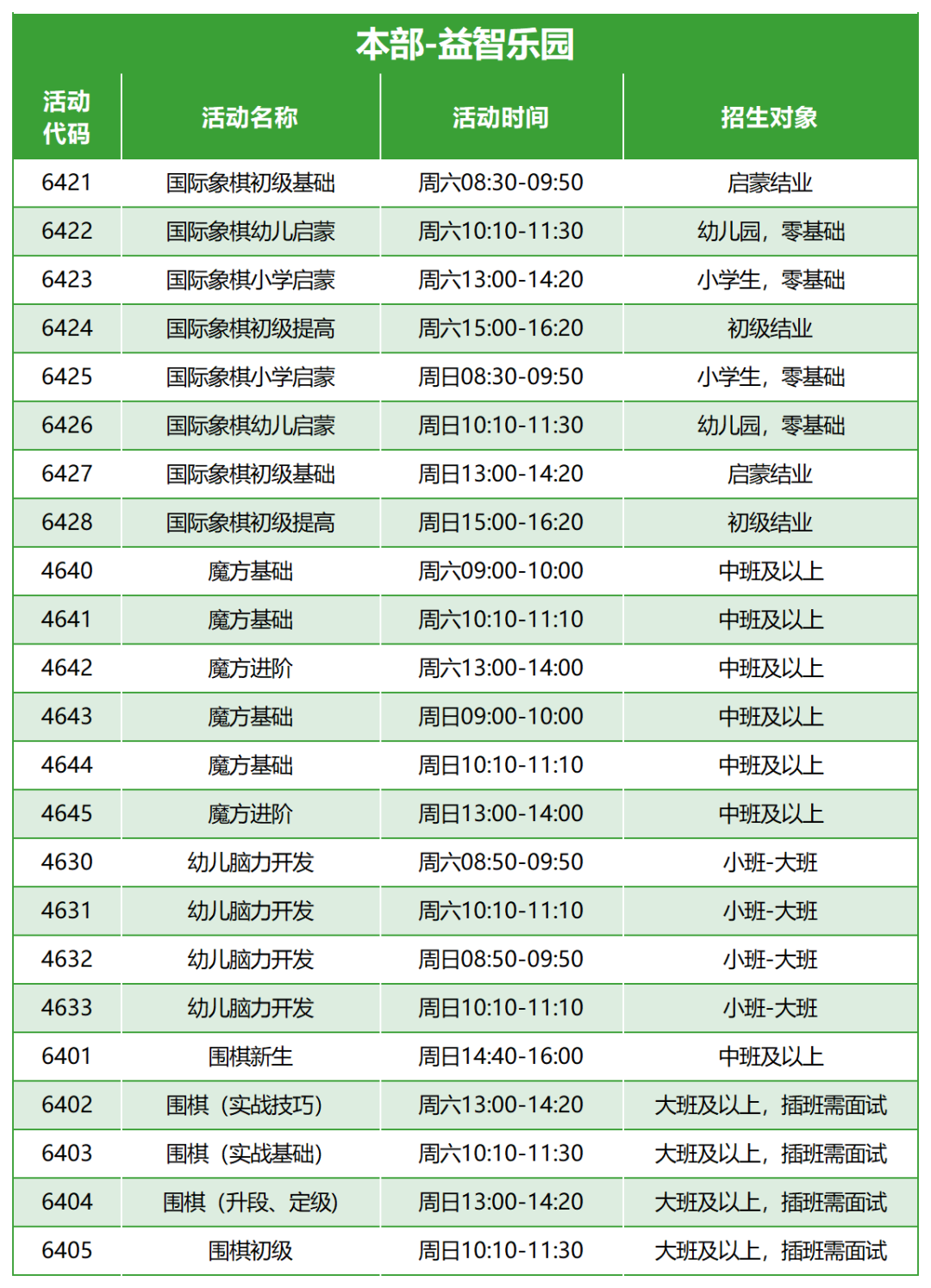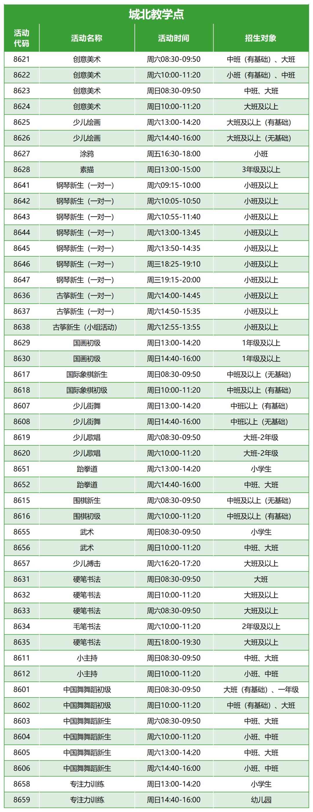 注:学员因自身原因没有按时参加活动的,不单独退费、补课。报名前请按需选择。