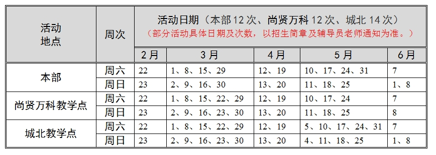 四、活动日期参考(如有临时调整,将通过微信公众号另行通知):