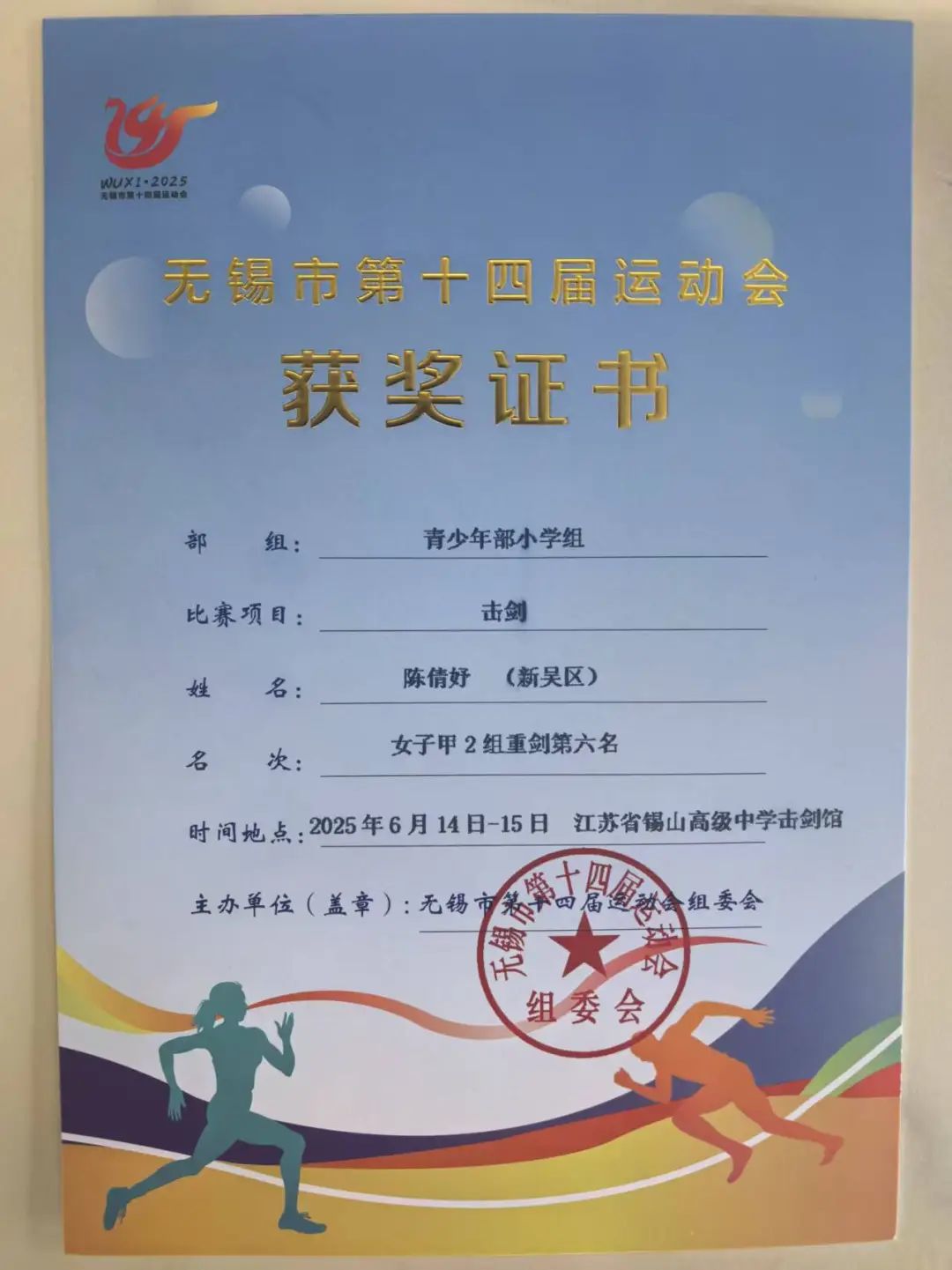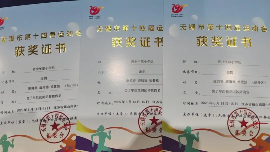 热烈祝贺少年宫击剑队在“无锡市第十四届运动会青少年部小学组击剑比赛”中,获得2金3银2铜等共计17个奖项