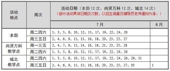 暑期活动将于7月1、2日开始,请大家提前做好相关安排。