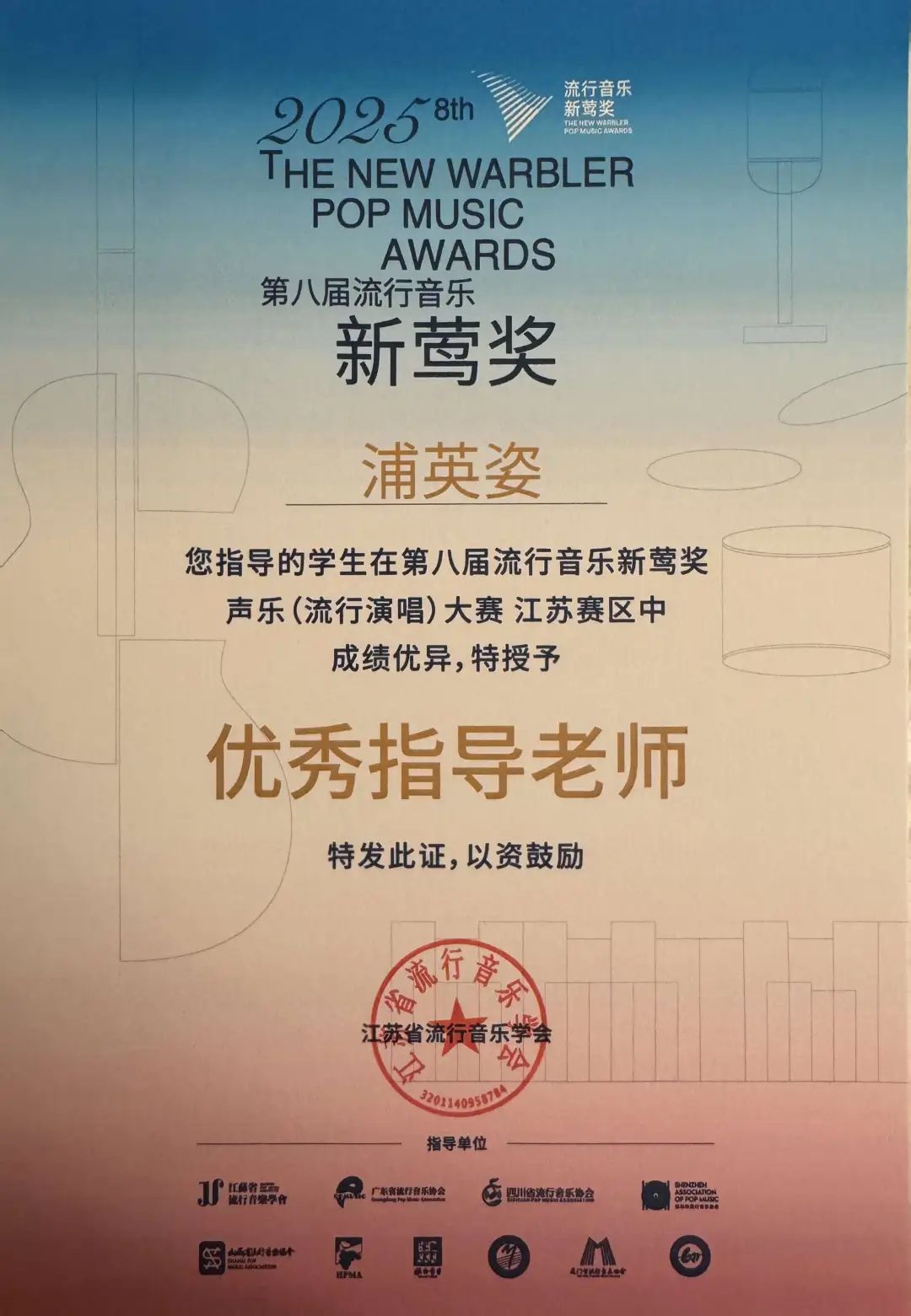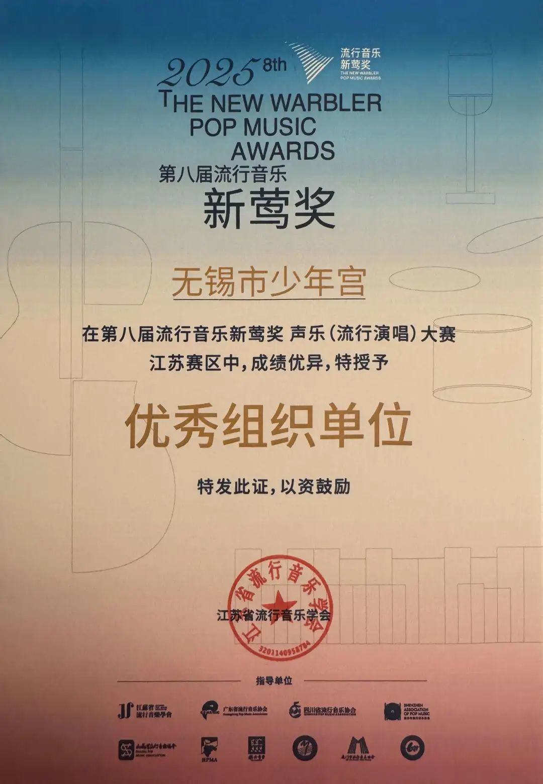 浦英姿老师带领无锡市少年宫声乐团的46名学员参加了2025第八届流行音乐“新莺奖”江苏赛区无锡分会场比赛,有22名学员晋级全国总决赛,获得1名新莺大奖,1名金奖,5名银奖,12名铜奖,3名优秀奖的好成绩。