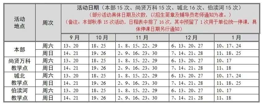 (如个别专业、活动有排练、演出或其他安排,请以辅导员老师通知为准)