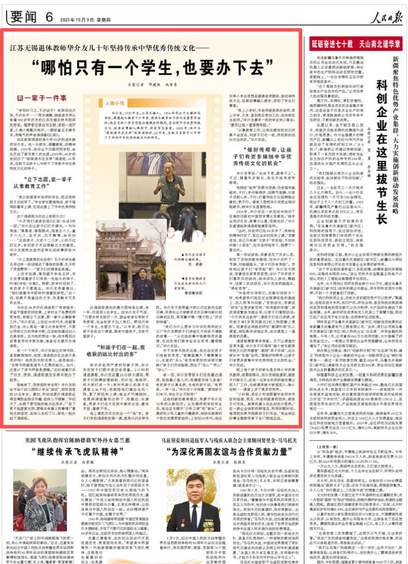 近日,《人民日报》报道了无锡少年宫退休教师华介友开办“琅琅读书在东林”经典诵读班的事迹。22年来,他已在数万名孩子心中种下中华优秀传统文化种子。这位90岁老人秉持“哪怕只有一个学生,也要办下去”的执着,不仅体现了老一辈教育工作者的初心,也折射出无锡市少年宫在传统文化育人道路上的坚守与拓展。