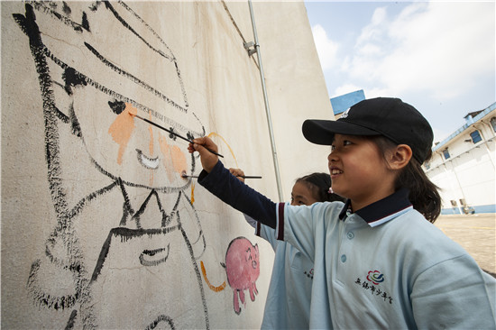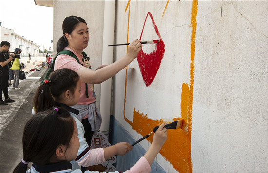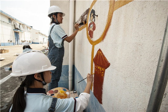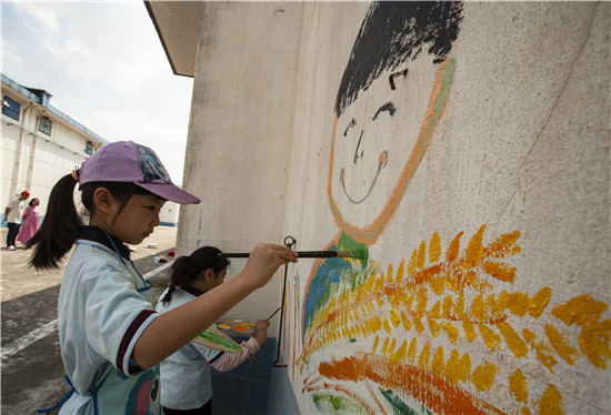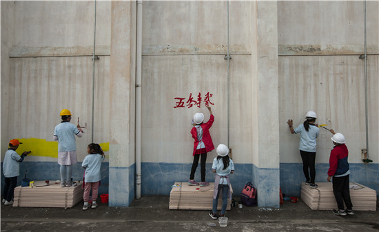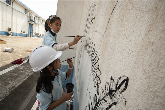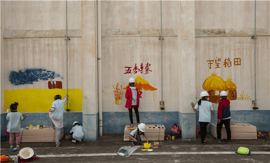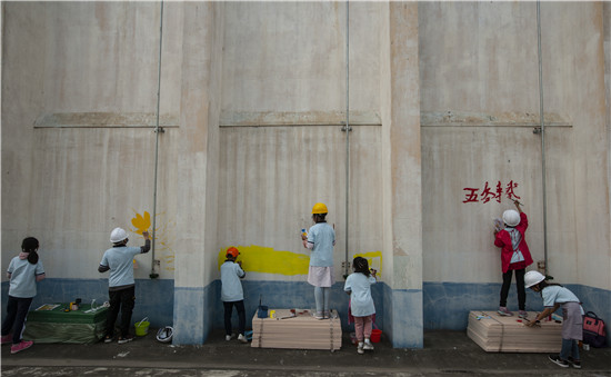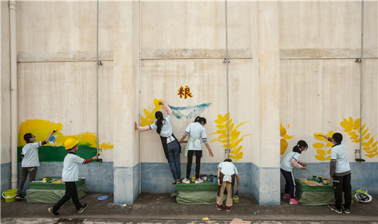 紧接着,多才多艺的孩子们拿起画笔进行墙面彩绘,一幅幅反映爱粮节粮的生动画面跃然墙面,为粮库增添了不少童趣和色彩。