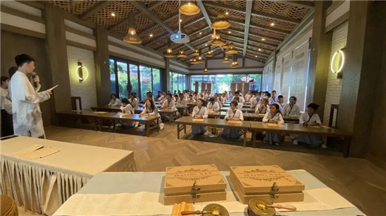 来到拈花湾,唐风小镇与现代语商又会碰撞出怎样的火花?一切尽在语商营的第二天,在导师的带领下,深入拈花湾,穿越时光,彷佛古代的书童,开嗓练声,头头是道。通过发声练习,提高孩子声音的稳定性和力度;通过声音辨识,锻炼孩子们倾听、表达以及专注力;通过无畏表达,让孩子更自信更具表现力。