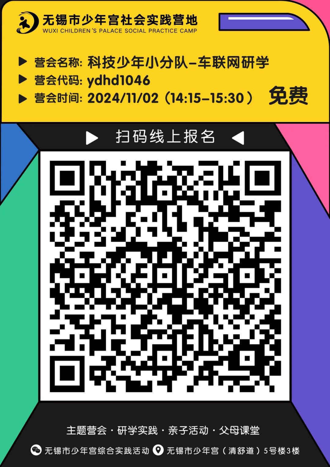 为帮助少年儿童更好地了解先进科技成果以及在生活中的运用,激发少年儿童对科技的兴趣与热爱,少年宫营地特别组织'科技少年小分队'系列活动,本周六将带领孩子们参访省级特色小镇——中国南山·无锡车联网小镇。