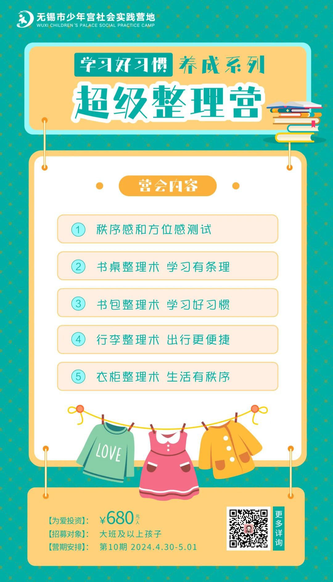 通过学习书桌整理、衣橱整理、行李箱整理,培养孩子的内在秩序感,懂得给自己的生活做简化、分类、定位,从而养成自律、专注的学习好习惯以及干净整洁的生活习惯。